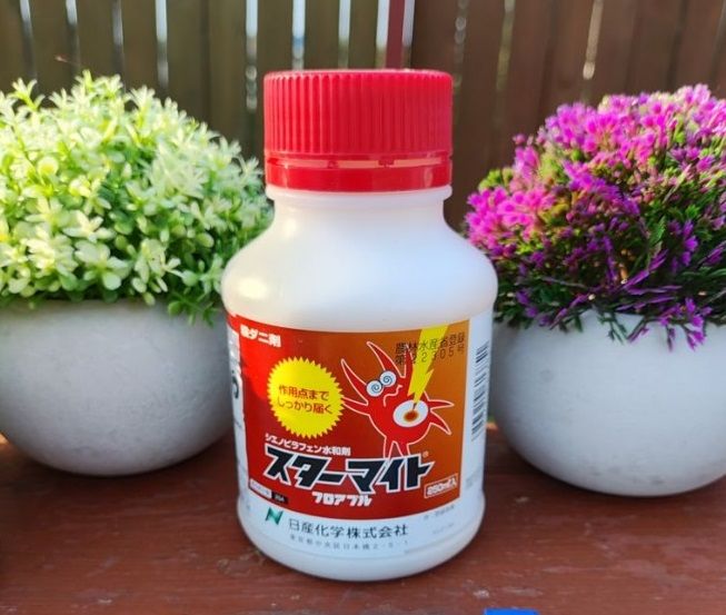 Стармайт акарицид. Действующее вещество: "Sienopyraphen". Эффективен на всех стадиях развития клеща (яица, личинки, нимфы, взрослые особи). Препарат высокоэффективен против всех видов устойчивых клещей: паутинного клеща, тарзонемидного (прозрачного) клеща, цикламенового клеща, цитрусового красного клеща, красного паутинного клеща. Активно действует на растительных клещей, не оказывает акарицидного действия на полезных членистоногих, обладает низкой токсичностью и не накапливается в окружающей среде. Отлично чередуется с Карамаито и Канемайт. Не влияет на полезных насекомых.