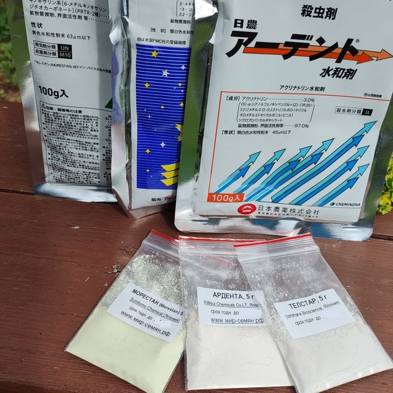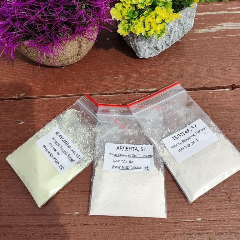 1) Ардента - инсектоакарицид (от насекомых и клещей). Действующее вещество: акринатрин 3,0%.