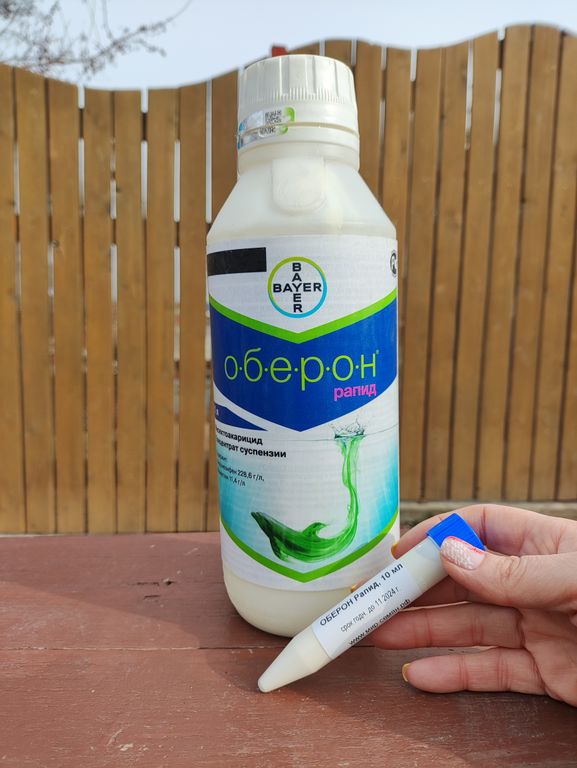 Оберон Рапид - инсектоакарицид нового поколения против растительноядных клещей, белокрылки, трипс, минер, листоблошек, медяниц и других вредных объектов, обеспечивающий надежную и продолжительную защиту. Действует и на на яйца, и на взрослых особей.