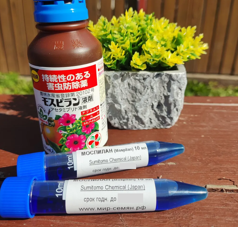 Результат обработки Моспиланом заметен уже через час после опрыскивания; имеет удлиненный срок уничтожающего действия на взрослых насекомых, яйца и личинки; малотоксичен для теплокровных животных, пчел и шмелей; совместим со многими пестицидами, за исключением сильнощелочных.